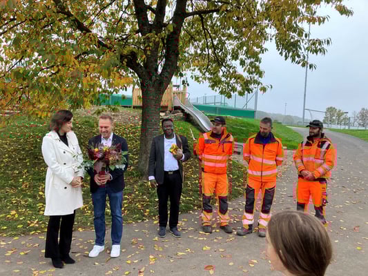 Unser Bürgermeister Mario Götz bedankte sich bei Frau Bär für die Unterstützung bei der Anschaffung der beiden Spielgeräte.