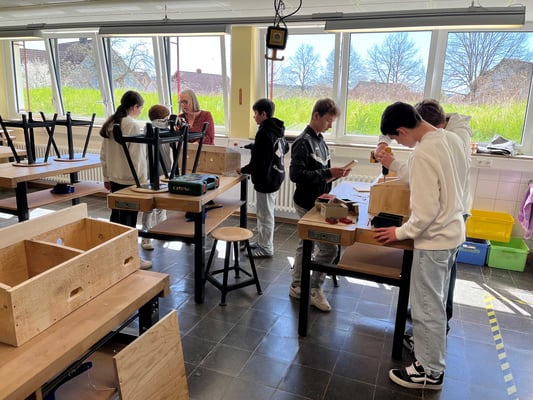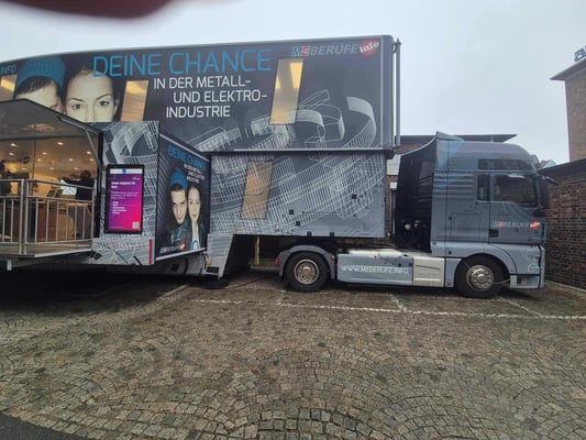 Die letzte Station – der SKF-Truck, der auch M + E Truck genannt wird, was für Metall und Elektro steht – war super interessant. Wir konnten dort Roboter bedienen, verschiedene Stationen durchlaufen und ein Quiz lösen. Leider war hier die Zeit viel zu schnell vorbei und wir mussten nach einer Abschlussrunde wieder zurück zur Schule fahren.