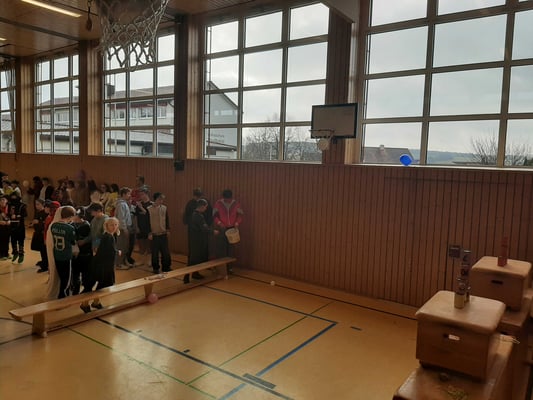 Am Donnerstag vor den Herbstferien veranstaltete Herr Schaab ein Basketballturnier, an dem die 5. und 6. Klasse teilgenommen hat. Gespielt wurde "3 gegen 3" auf zwei Kleinfeldern. Insgesamt traten sechs Mannschaften an. Auf dem dritten Platz landeten die "Jordans" und Platz 2 ging an die "Habibis". Sieger des Halloween-Basketballturniers war das Team "Der Basketball". Das Foto zeigt die drei Gewinner des Turniers, die Süßigkeiten als Preise erhielten. Herzlichen Glückwunsch an alle!