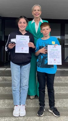 Die beiden erfolgreichsten Schülerinnen und Schüler bei der Teilnahme am Schülerlotsenwettbewerb auf Kreisebene, welcher an der