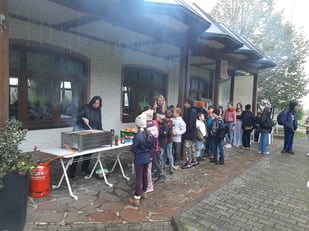 Am 04.10. wanderten drei Klassen unserer Schule auf einer eineinhalbstündiger Tour durch den Oberthulbaer Wald zum Reither Sportplatz. Dort angekommen, freuten sich alle über gegrillte Bratwürste. Herzlichen Dank an Frau Bierwolf fürs Grillen und die Verantwortlichen der DJK Reith für den Grill!
