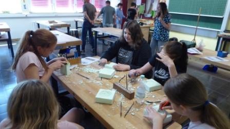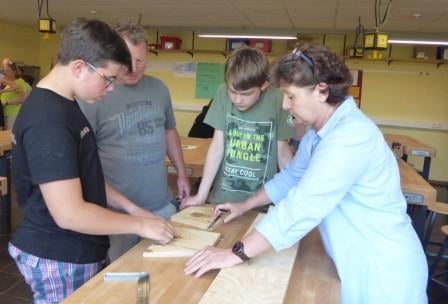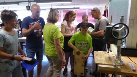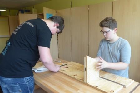 Es fanden sich Schüler aus der 8. Klasse, die sich nachmittags im Werkraum zum Bau der Nistkästen trafen.