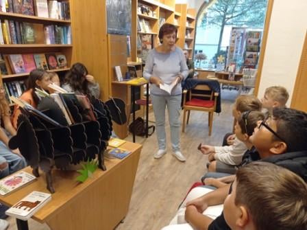 Wir schauten uns zuerst den Buchladen genauer an. Ehe wir dann unsere Bücher in Empfang nehmen durften, hatte Frau Bollenbacher, die Inhaberin der Buchhandlung noch eine tolle Überraschung für uns parat. Sie stellte uns Frau Hildegard Karl vor, eine ehemalige Lehrerin aus Bad Kissingen, die gerade ihr Buch „Matthias, das unmögliche Kind“ veröffentlicht hat. Zuerst schilderte diese uns, den spannenden Weg ihres Buches von der ersten Idee bis zum Druck und Verkauf im Buchhandel, der genau an unserem Besuchstag startete.