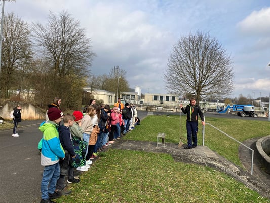 Die Klassen 4a und 4b besuchten im Rahmen ihres HSU-Unterrichts vor den Osterferien die Kläranlage in Bad Kissingen. In der zweistündigen Führung lernten die Schüler und Schülerinnen sehr viel über die Reinigung des Abwassers. Sie staunten darüber, wie viele verschiedene Arbeitsschritte nötig sind, um das schmutzige Wasser wieder zu reinigen. Besonders in Erinnerung wird sicherlich auch der Geruch bleiben. Und die wichtigste Regel werden sich die Kinder nun auch besonders merken: Keine Küchenabfälle und vor allem keine Feuchttücher in die Toilette werfen.